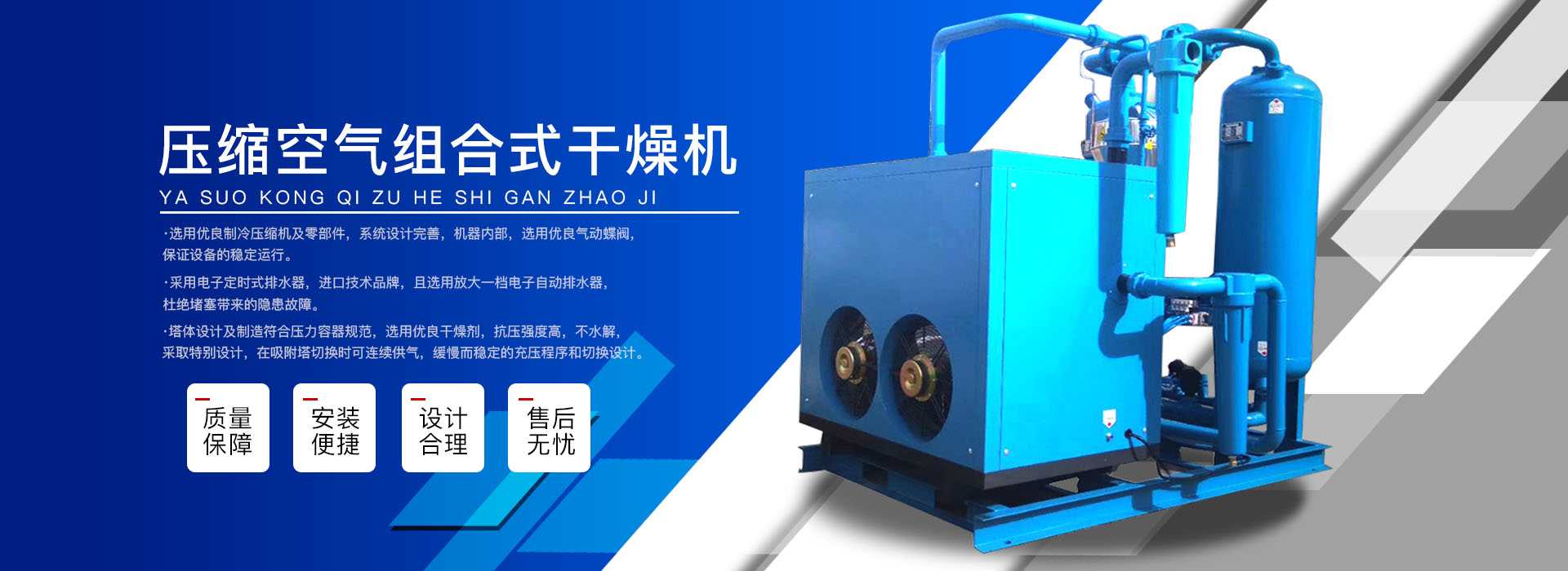 本公司系中國科學(xué)院、重鋼院、機(jī)電技術(shù)設(shè)計院、氣動技術(shù)研究所等相關(guān)專家合作的具有雄厚技術(shù)力量的高科技實體,是一個專業(yè)從事各種氣體干燥凈化及分離純化設(shè)備研究開發(fā)及推廣應(yīng)用的高科技公司。公司積多年對壓縮空氣凈化設(shè)備的生產(chǎn)技術(shù)和銷售經(jīng)驗,并在消化吸收國外先進(jìn)技術(shù)的基礎(chǔ)上,結(jié)合國內(nèi)實際工況特點,研制出適合國內(nèi)外廣大用戶的“滬盛”牌HSD系列壓縮空氣冷凍式干燥機(jī)、吸附式干燥機(jī)、后部冷卻器、預(yù)冷機(jī)組、工業(yè)用冷水機(jī)組和HF系列壓縮空氣高效精密過濾器(國產(chǎn)濾殼,美國漢克森HANKISON濾芯)等13大系列計300多種規(guī)格產(chǎn)品。并且新研發(fā)出燥式干器, 廣泛應(yīng)用于電力、冶金、電子、機(jī)械、石油、化工、汽車制造、紡織、化纖、輕工、造紙、橡膠、儀表、食品、空氣、卷煙、生物、醫(yī)藥、日化等行業(yè),在國內(nèi)同行業(yè)中一直處于領(lǐng)先地位。